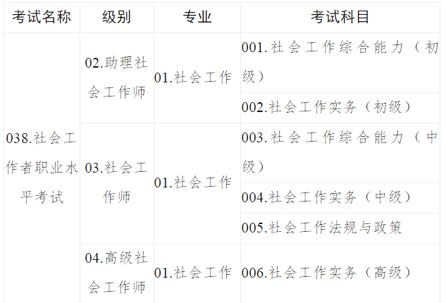 4.社会工作者职业水平考试代码及名称表